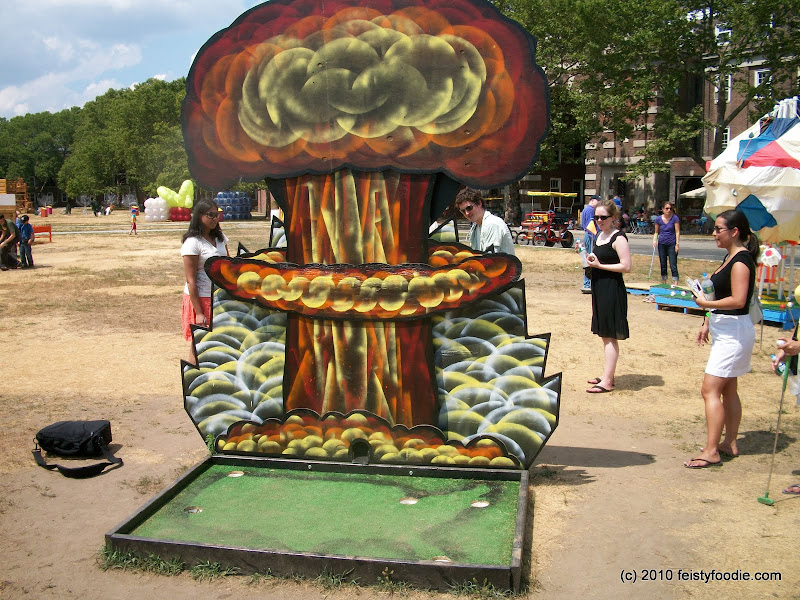 We also walked outside of the festival, to check out some other parts of the island and to help digest. We even played a couple holes of mini-golf, which was free with donations suggested. I found one hole to be particularly disturbing. Bye bye, Canada? There were also art exhibits throughout the island and bikes available for rental.