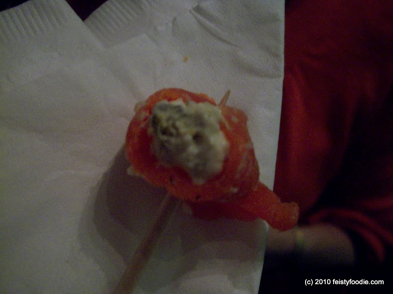 Beet with Goat Cheese and Bacon. This was one of my favorites of the night. The huge beet slice was used to hold the bacon and goat cheese. A perfect combination of salty, sweet, and tangy.
