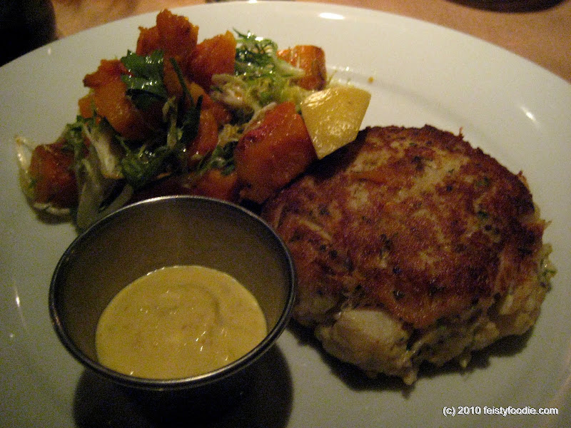I decided to go with the Jumbo Lump Crab Cake, Lime-Chili Aioli, Roasted Butternut Squash and Herb Salad. I am sort of a crabcake fiend. I can’t get enough of them. This one was full of lump crab meat with very little filler, but for some indescribable meaning it was just meh. Not terrible, but not great at the same time. The squash salad was delicious. I couldn’t think of a more appropriate side dish for this time of year.