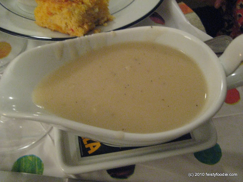 The turkey sliced and ready to chow down with homemade turkey gravy.