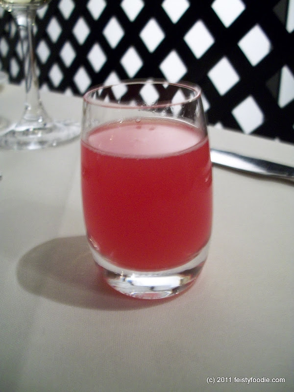 Next, we were given a palate cleanser of some fresh watermelon juice. I believe it had something else in it, but don’t remember.