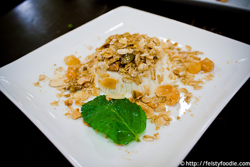 Almond Bistro 3 06.jpgAlmond milk panna cotta, with house made granola and lavender syrup – I love almond milk, and I love panna cotta, so it was a no brainer when I saw this on the menu.  Unfortunately, covered in crap as it was, I found it hard to enjoy – though it turned out the texture of the panna cotta itself was so freakin’ soft that it needed the crunchy bits to sort of give it a bit of texture back. The bits of dried fruit in the granola made it interesting, but … I don’t know, it didn’t do it for me. I didn’t find it as enjoyable as I thought I would.