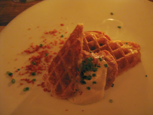 Crispy sweetbreads with a black pepper waffle and whipped maple was the chef’s playful take on chicken & waffles – and quite honestly, one of the best sweetbreads I’ve ever had. Perfectly cooked, not chalky at all, with a crisp, lovely savory waffle alongside… I really wanted another portion.