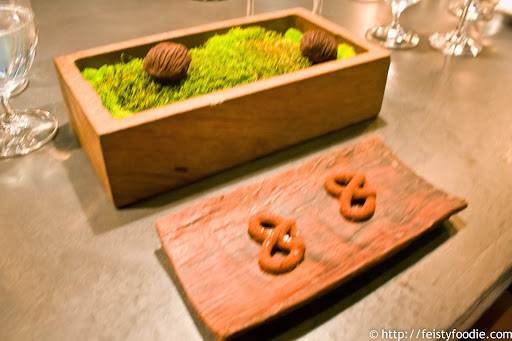 The sweet courses began with cheesecake: lemon sherbert and wood sorrel. Pretty tasty, though the cheese didn’t quite taste like cheesecake to me. Just like… cheese.