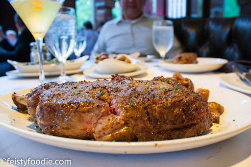 You can see the bottom of my drink in the second photo! When our server brought our steaks, he asked that we cut into them to make sure they were cooked properly, despite my slurred insistence that I was sure it was fine. It was fine. DZ and I both ordered the cowboy – bone in rib eye – and it was awesome. The best I’ve ever had? Probably not, but it was pretty darn close. I ate 1/5 (or less) before calling it quits, but taking it home wasn’t a problem. It was gooooood.